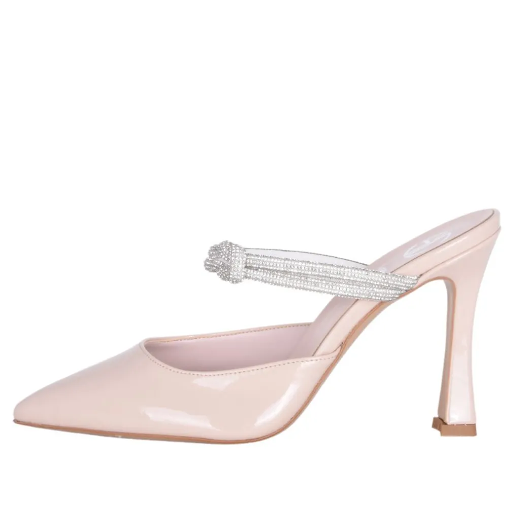 Scarpe a punta vernice nude con strass elegantissime nuovo modello BRUNELLA con tacco a clessidra stabile ed elegante