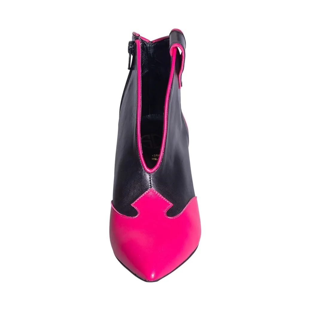 Tronchetti tacco basso a punta made in italy nero / fuxia